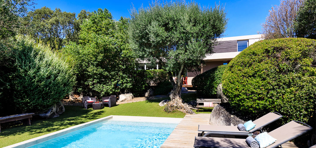 Elegant in its simplicity and stylish, Villa Bule is a stunning mid-century modern design property within walking distance of the shops, bars and restaurants of Porto Vecchio old town. The private pool and wooden deck areas are well screened by mature shrubs and scented maquis, creating an idyllic retreat enviably close to one of the most requested destinations on the island.