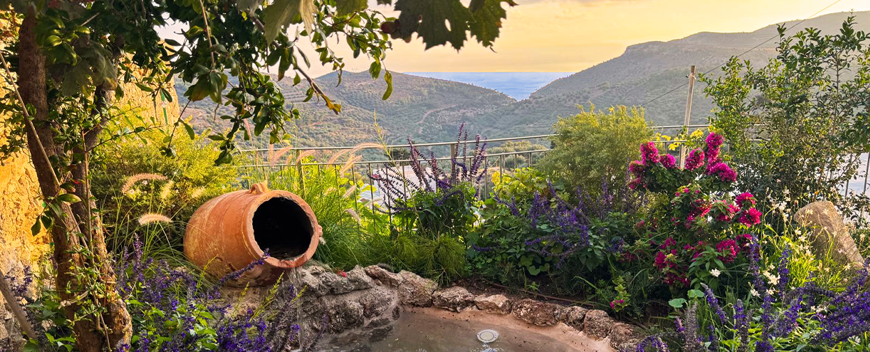Outside, Pomegranate’s terrace is a true delight, framed by a colourful garden that changes character with the seasons. The petite rock pool is utterly irresistible, offering the perfect place to cool off: just big enough to dip your feet, sip your favourite tipple and drink in those vast, soul-stirring views towards the sea.