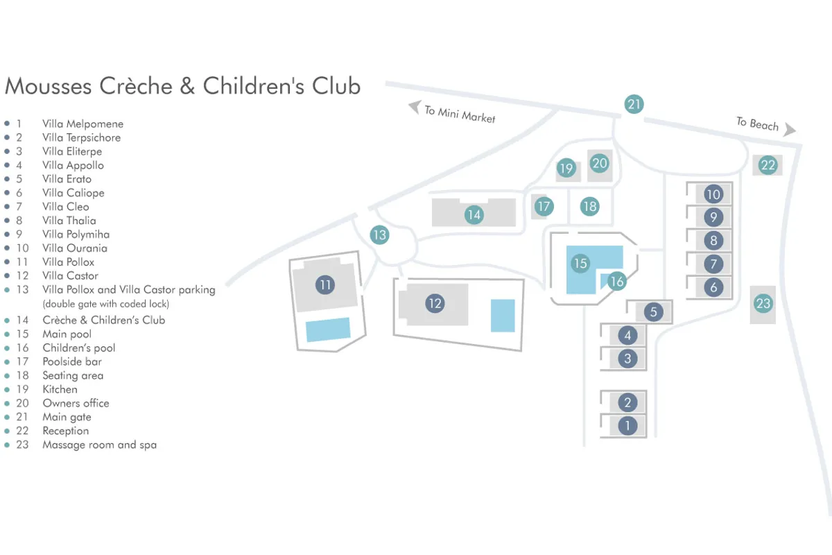 If you are looking for a holiday that is a home away from home with top-quality childcare, lovely pools, a small shop a stone's throw away which seems to sell everything you need to keep young ones happy, plus the most beautiful beaches a few moments away, come to Mousses. A slice of paradise for young children and grown-ups alike.