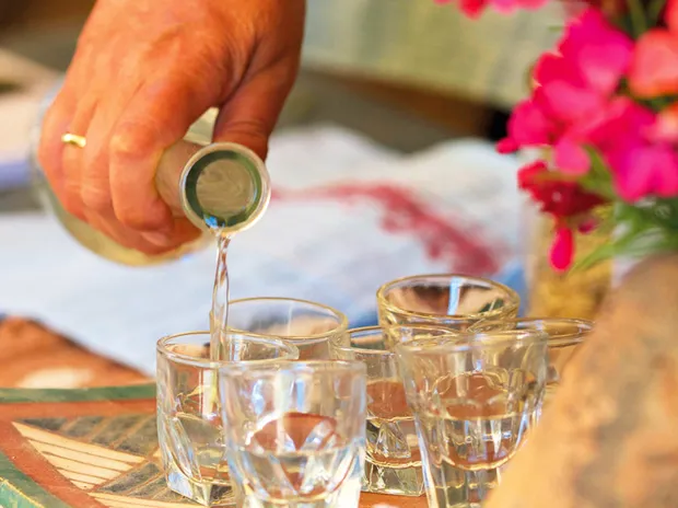 Although ouzo is Greece’s best-known tipple, you’re almost certain to come across Tsipouro (or raki) too. This clear, potent spirit is made from grapes and is typically served in small glasses as a welcome drink or after your meal. If you’re eating fish, it’s traditional to drink the pine-flavoured retsina.