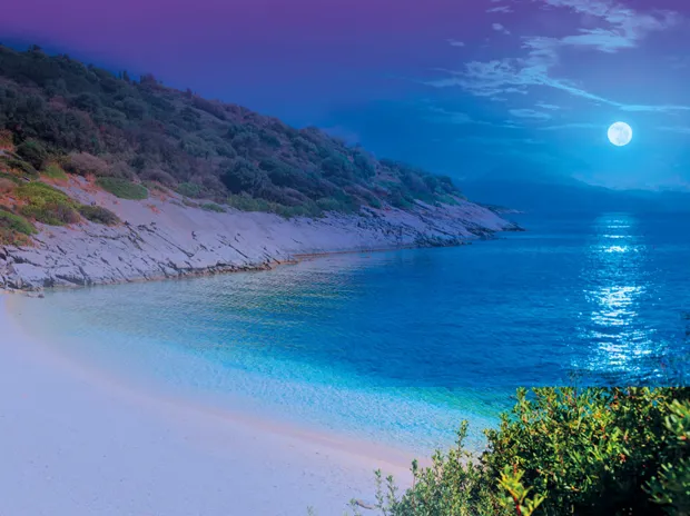 Just a ten-minute drive away from Vathy, Limonari beach is a great destination for an early evening adventure. Settle in to watch the moon rise over Kalamos Island and notice how, slowly but surely, it lights up the beach and illuminates the sea enough to encourage you to take a dip. While swimming, you can often see phosphorescence in the water too, which is magical.