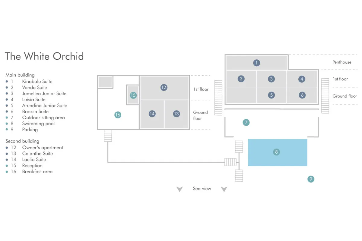 Perfection – White Orchid has just got it all right. From the moment you arrive and see the view you know that you are in for a treat. The room was absolutely stunning with a huge balcony and a mesmerising view out to sea. We loved the architecture of the building and the quality of the finish. Klaudia, Rado, Sotiris and Eva need a special mention – all quietly going out of their way to ensure that every guest was looked after and had their needs met. Nothing was too much trouble and every encounter was one with a smile. We have returned home after a fabulous week's holiday, feeling very relaxed and cared for. For us the whole experience from booking the holiday to booking car parking at the airport and the holiday itself has been hassle free and of a very high standard. Many thanks.