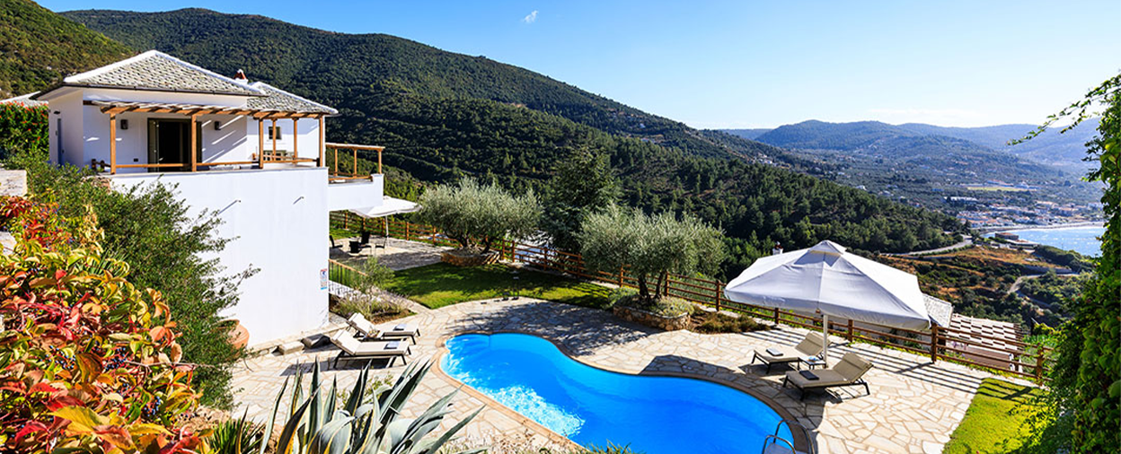 A villa or hotel holiday in Skopelos – wonderfully green, unspoilt and peaceful – is about enjoying a world which moves at holiday pace. Its wonderful beaches range from secluded coves to more organized spots like Panormos, Milia and Kastani, well equipped with sunbeds, watersports and beach bars for idyllic days by the sea. Our villas on Skopelos are some of the very best available on the island, a mix of brand new villas and stylish renovations, family properties and smaller romantic retreats, almost all with their own private swimming pool. Location is key, so our properties are either walking distance to Skopelos Town or blessed with fantastic views, or in many cases, both!