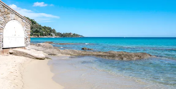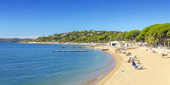 Clean, white sand edges a beautiful bay of crystal-clear water, just round the headland from Sainte-Maxime town. A few rocky outcrops provide interesting snorkelling opportunities.
