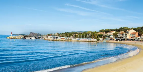 The popular beach of Saint-Cyr-sur-Mer, pretty Les Lecques, is 2km of soft sand surrounded by wooded hills and stunning scenery. Nautical activities abound, from sea kayaking to water tubing.