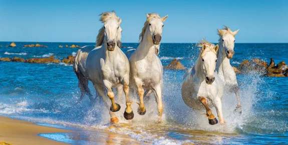 Riding through the splendour of the Camargue on horseback is a liberating way to experience this protected wetland. Europe’s largest river delta is also home to flaming pink flamingos and the famous Camarguais horses.