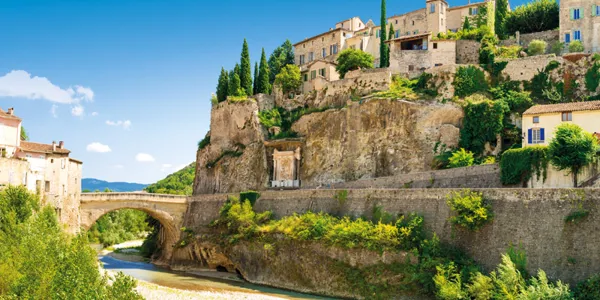 Sitting obediently at the foot of Mont Verdoux, this unassuming but oh-so-pretty medieval town has a very grand story to tell. As the name lets slip, Vaison-la-Romaine was once under Roman occupation, and vast ancient ruins – forming the largest archeological site in France – can be explored here. A beautiful Provençal Romanesque cathedral adds an extra layer of history, all of which might call for a cooling glass of rosé at one of the bars in the traditional square, Place Montfort.