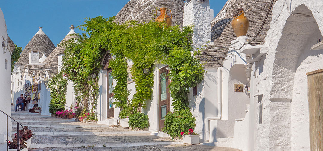 Puglia is the ‘heel’ of Italy, on one side caressed by the waves of the Ionian, on the other the Adriatic Sea. A long, slender peninsula, it’s drawn the attention of traders and invaders for centuries; the Greeks, Romans, Austrians, Spanish and French all claimed it as their own and then left their legacy of spectacular Byzantine, Romanesque, Gothic and Baroque architecture. But it’s not these impressive buildings, tucked away in the ancient hearts of villages and towns, that Puglia is most famous for. Instead it’s the indigenous fairy-tale trulli houses: a nod to the fact that what Puglia often does best is be itself.