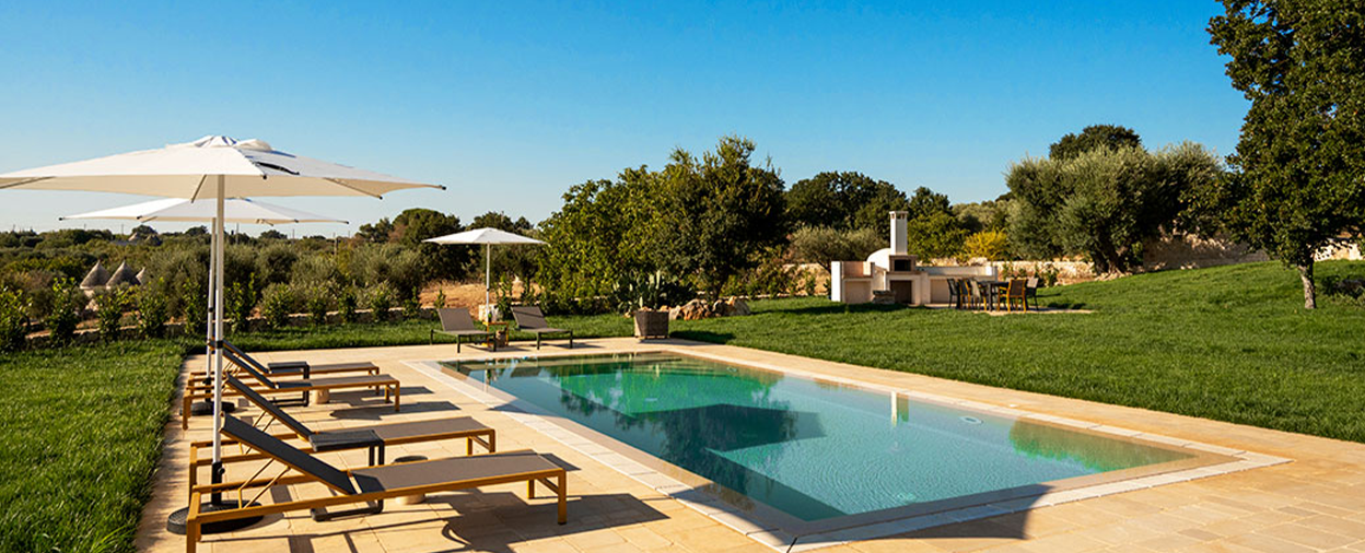 This being Puglia you’ll spend most of your time outside of course, and the grounds here are another lovely feature. An old oak tree sits next to the house, providing natural shade for the terrace, and there’s lots of sunbathing space around the 10-metre swimming pool. The garden is large, lawned and lush, with plenty of runaround room and a barbecue area with a big dining terrace for evenings in. For days or nights out, all the attraction of the Valle d’Itria are within easy reach, including Cisternino, Martina Franca, Ostuni and UNESCO-listed Alberobello. The coast at Torre Canne natural reserve is a half-hour drive away and day trips to the Baroque city of Lecce or the extraordinary town of Matera are also easy to navigate if you’re keen to explore a little further. Whether you believe in fairies or not, this is an absolutely magical place for a holiday.