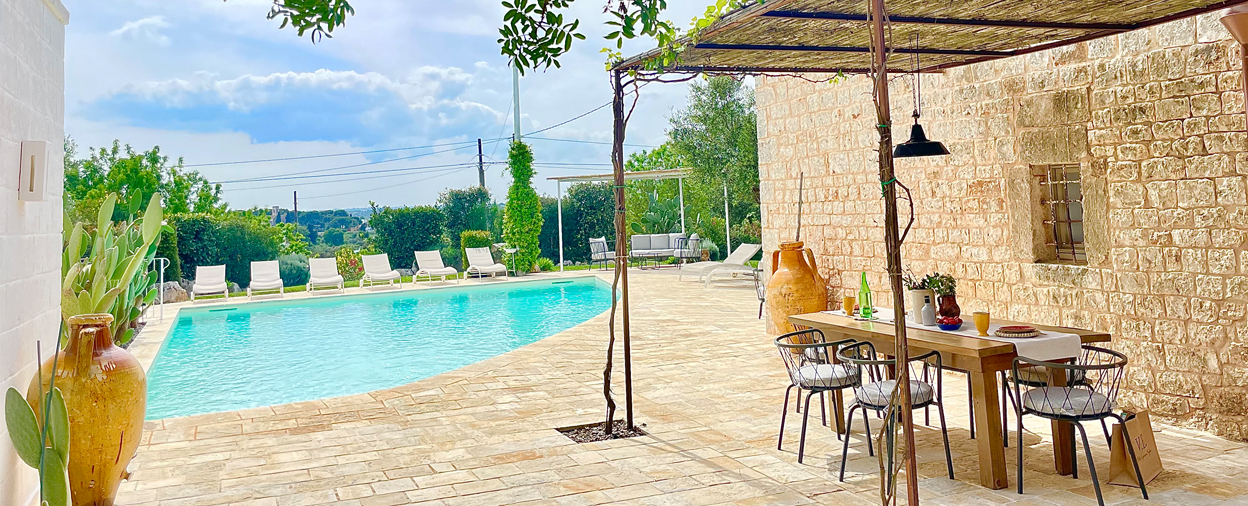 Originally built as a store house or perhaps a farm dwelling, Trullo Iana has been sympathetically extended to create a tasteful three-bedroom holiday home, decked out in neutral colours with a smattering of local antiques. The thick walls and tiled floors lend an atmosphere of cool calm, but there’s air-conditioning too if you need it. The layout is a little quirky as befits a historic building, with two double bedrooms in the main building and a new annexe housing a third one, ideal for two couples looking for a degree of privacy as well as company on holiday. Outside, there’s plenty of room for you all to relax in the Mediterranean gardens or around the pool, with a summer kitchen and barbecue for long, convivial evenings beneath a canopy of stars. The sea sparkles in tantalising glimpses from around the pool, and when you want a closer look, it’s just a 20-minute drive to the beach at Capitolo. There are a handful of small local restaurants within six minutes by car, but to experience the full joy of eating out in Puglia, we recommend driving a few kilometres further to Monopoli and losing yourself in the lively maze of the old town, or taking a stroll around the clifftop splendour of Polignano a Mare.
