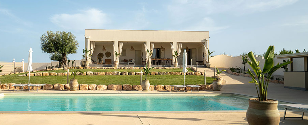 Located on a large, gently sloping and fully enclosed plot, Villa Augusteo offers you generous outdoor space and privacy, just a kilometre from the beautiful beach of Santa Maria del Focallo. The garden is terraced and landscaped with Mediterranean plants, palm trees and cacti that thrive in Sicily’s long, hot summers, with an impressive 12-metre pool and lots of lounging space.