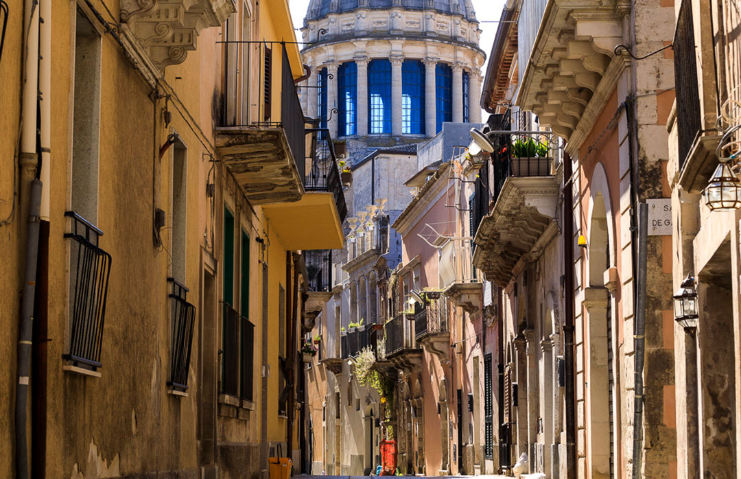 A longer day today, combining Scicli & Ragusa Ibla. Start in Scicli, then take a drive through the countryside to Ragusa Ibla. As part of the UNESCO-listed Val di Noto Baroque towns, Ragusa captivates with its beauty and views, popular with Italian visitors who come for typical Sicilian cuisine and to see the filming locations for the famous TV series Inspector Montalbano.