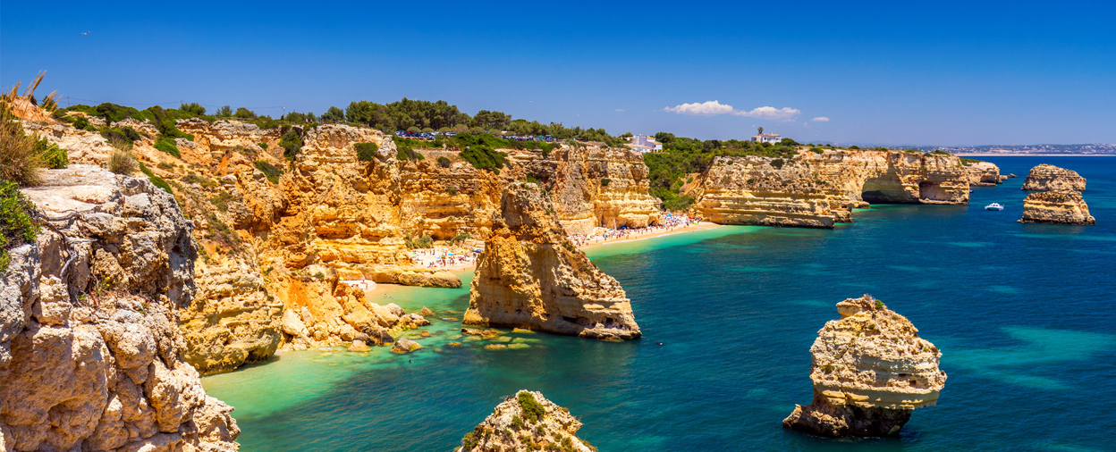 Portugal’s most southerly region boasts an iconic and instantly recognisable coastline of fine sandy beaches backed by ochre-yellow cliffs, sea stacks and rock archways that stand testament to the power of nature. Inland, there are rolling hills dotted with citrus and olive groves, plus crumbling castles, mountain villages and walking paths to explore. The Algarve is unique in enjoying an Atlantic coast with a Mediterranean climate, attracting not just holidaymakers but also a wide variety of birdlife that flocks to the Ria Formosa Natural Park.