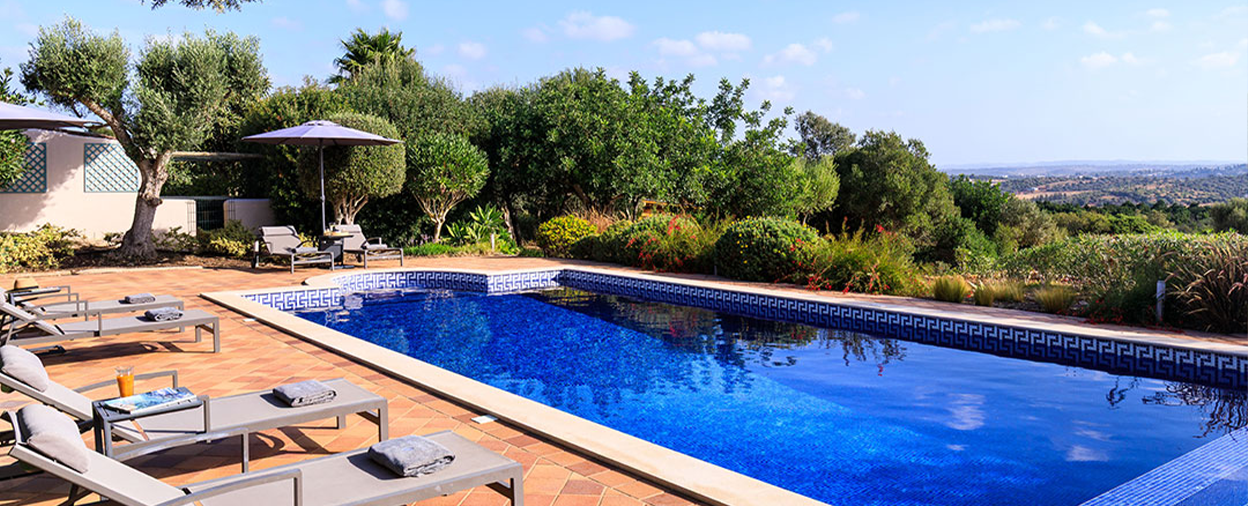 The sense of space feels wonderfully relaxing from the moment you arrive. Leave the bags and take a moment to appreciate the huge grounds, the koi carp pond and the lush green lawns, all with far-reaching views over the west Algarve countryside. The large pool is set to one side of the lawned area, flanked by trees, shrubs and colourful flowers, and furnished with comfortable loungers and parasols so you can enjoy this lovely aspect all day long.