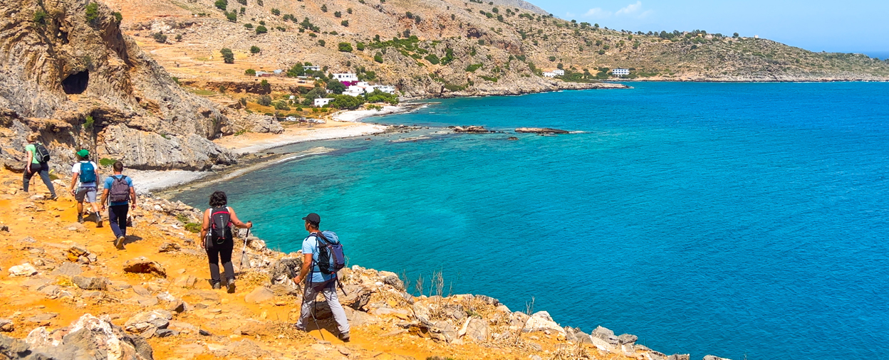 All our walking holidays require a reasonable level of basic fitness. If an hour’s stroll on the flat is about your limit, it’s important to bear in mind that the terrain in Crete may be steep and the local tracks rough, adding to the demands of the day. Equally, none of our walks are so demanding that they require anything more than a good pair of walking shoes, a bottle of water and a desire to step out at a modest pace, though walking with poles is recommended for those who require extra stability. We make regular stops along the way to rest, take in the view and discuss the astonishing surroundings. Full days are always broken with a leisurely (and delicious!) lunch. Finally, please bear in mind that the advertised routes may have to be altered to take into account local weather and trail conditions, and that the decision on whether to run the walks rests with our guide, who has extensive local knowledge and experience.